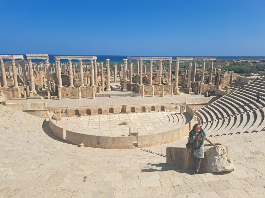 We were getting in trouble in Libya. Despite this, I can still say that I saw a Roman amphitheatre and ruins. They were so gorgeous that the pictures still linger in the back of my head.